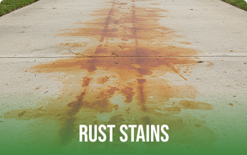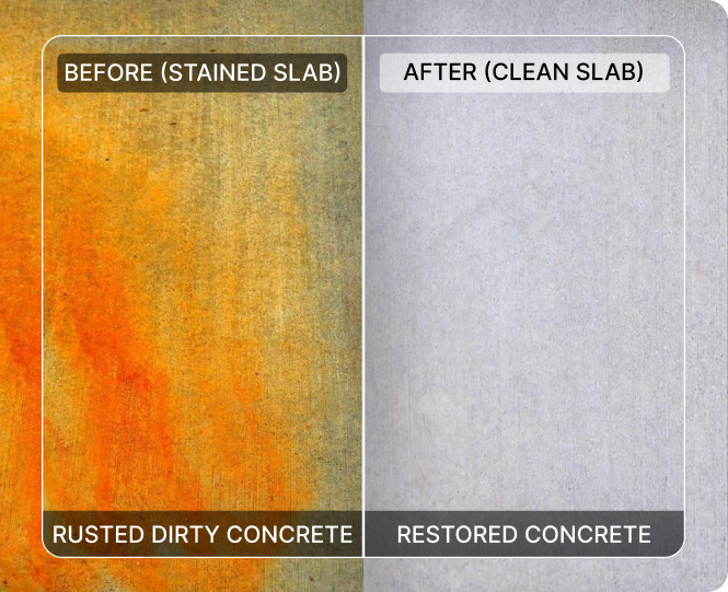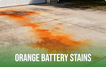 Remove orange battery acid burn that leaves concrete stained, streaked, and hard to restore with standard cleaning methods.