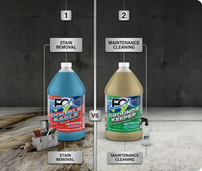 The power of the Starter Kit is not just what each product does on its own. It is how the system works together. Double Eagle serves as the first step in the restoration process, helping clean grease, oil, and buildup while also neutralizing acidic residue when needed. Groundskeeper follows up to make concrete pop, stay cleaner longer, and improve results on ongoing maintenance work.