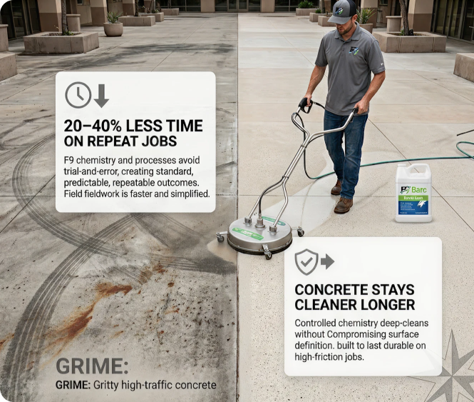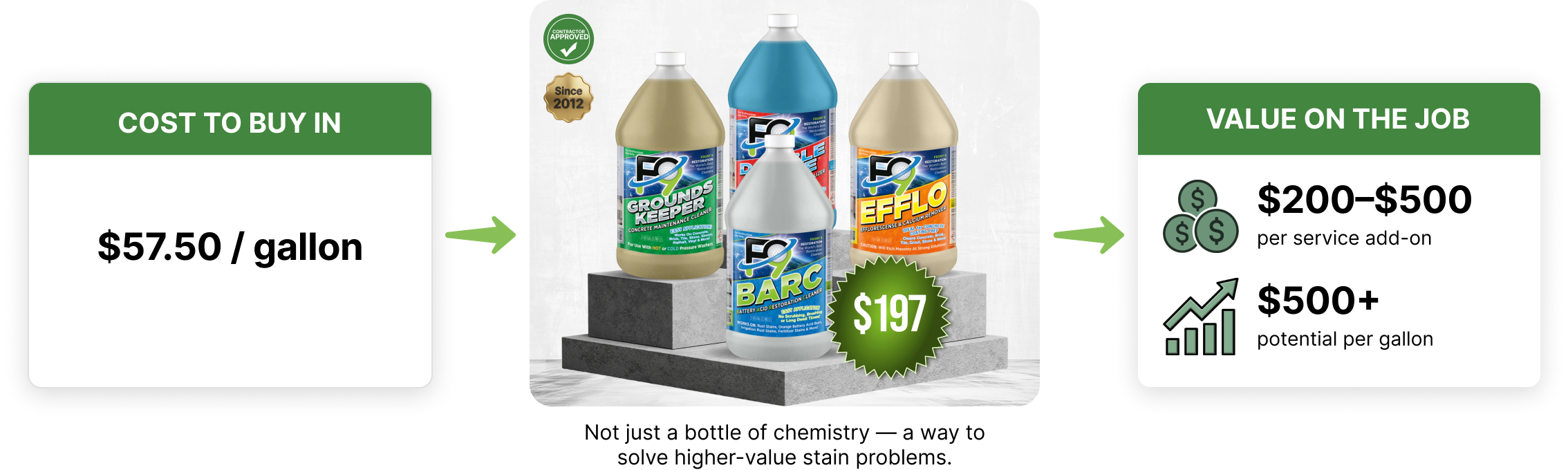 One gallon of F9 Barc can generate $500+ in revenue, reduce wasted time, and turn difficult stains into profitable work.